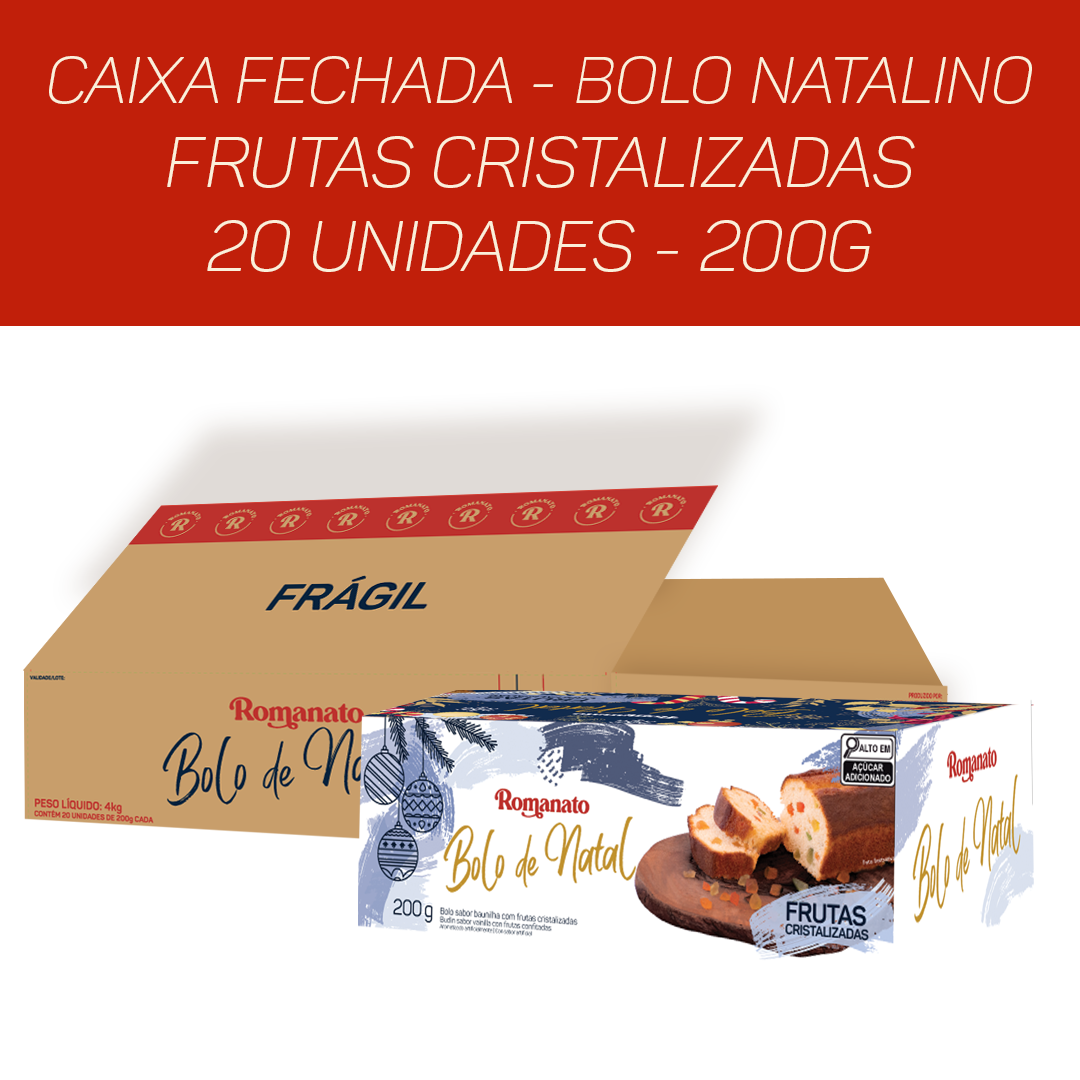 Cada caixa contém 20 unidades do Bolo Romanato Frutas Cristalizadas 200g